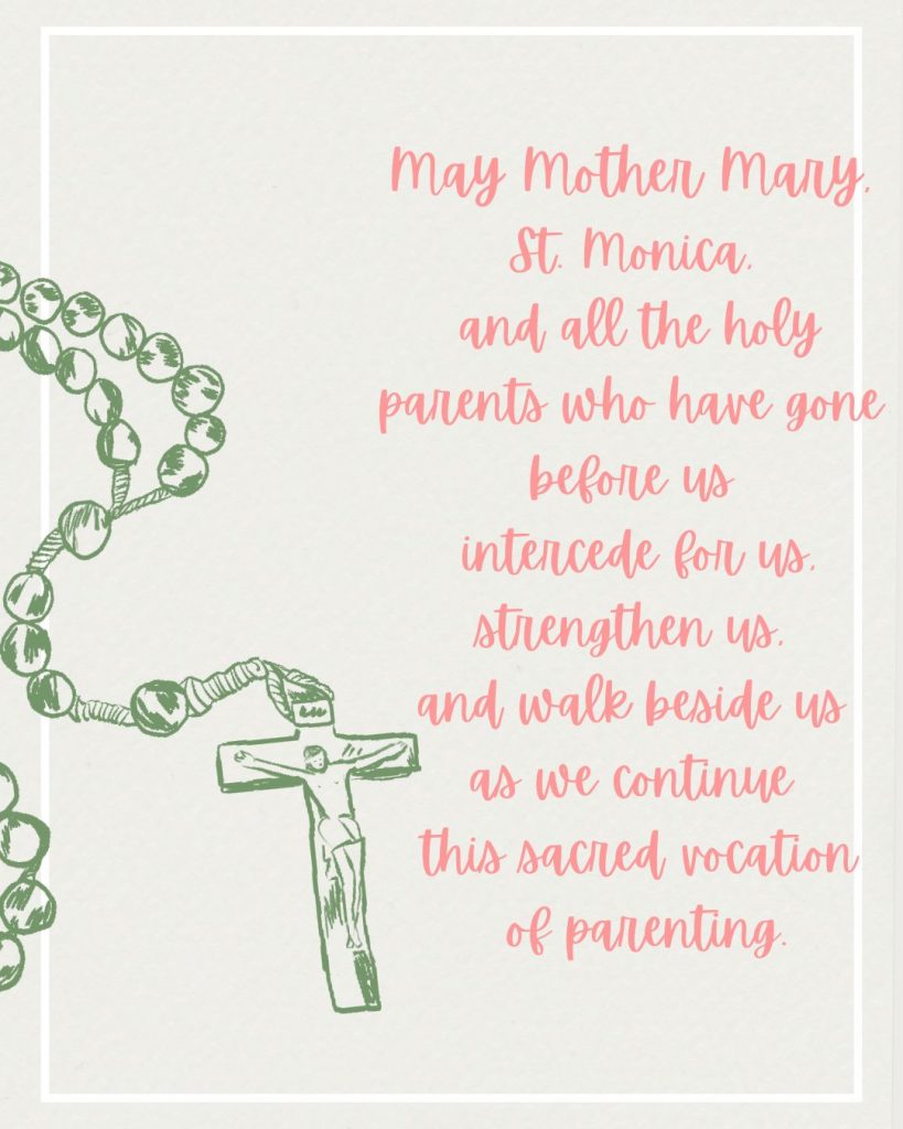 May Mother Mary, St. Monica, and all the holy parents who have gone before us intercede for us, strengthen us, and walk beside us as we continue this sacred vocation of parenting.
